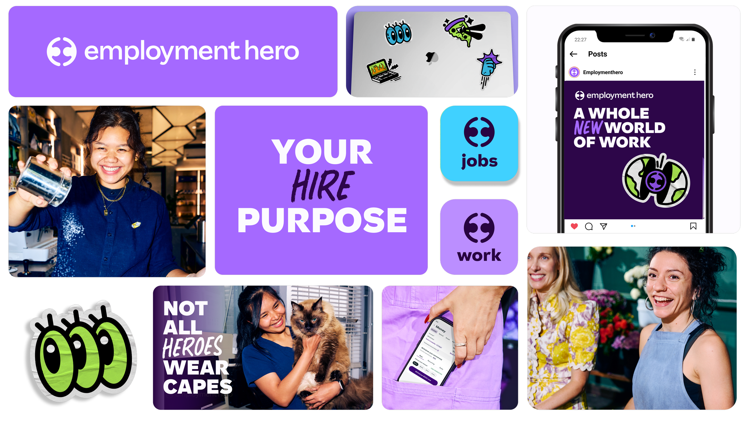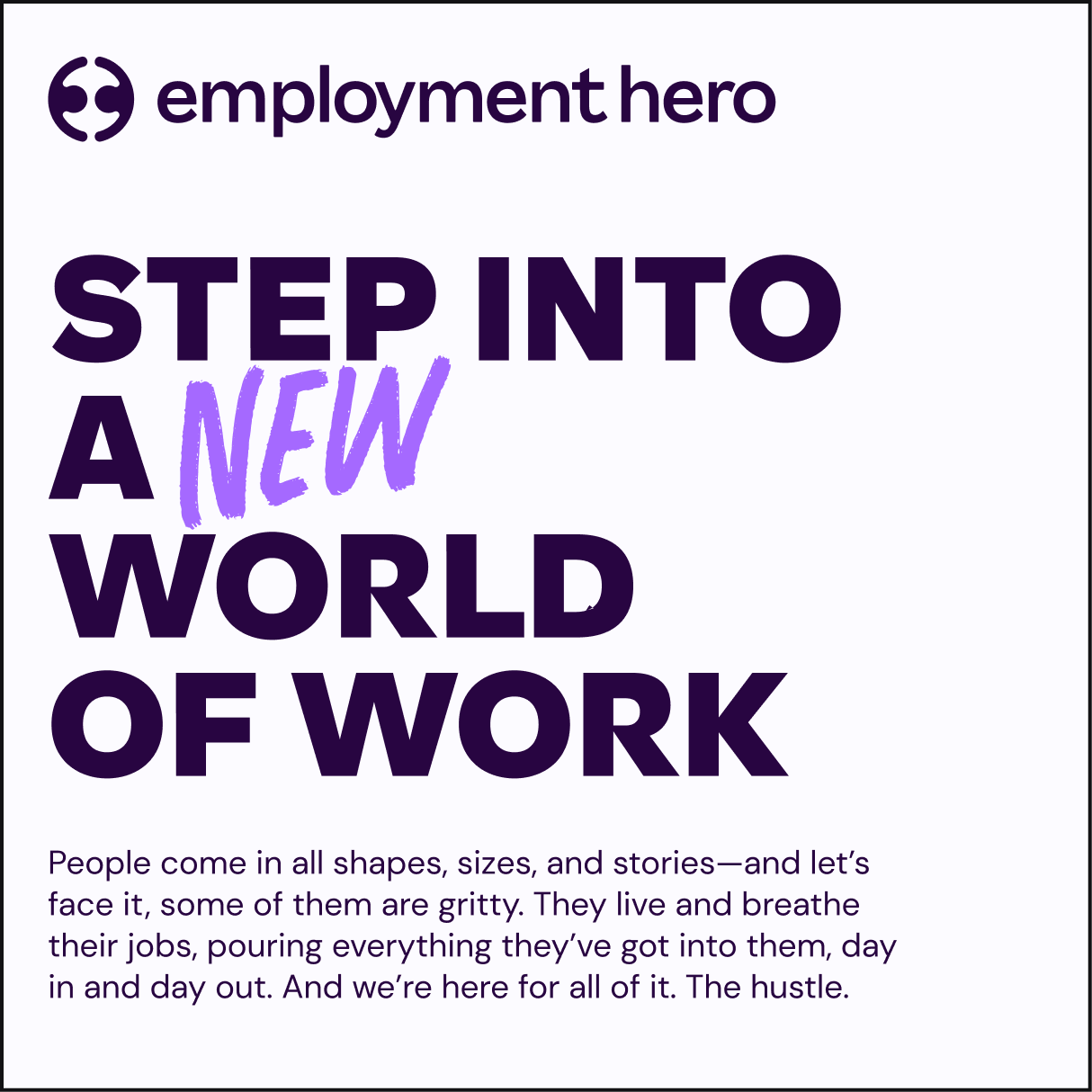 This is a full evolution of how Employment Hero shows up as the global authority in employment—featuring a fully reimagined identity, a bolder tone of voice, and one powerful brand built to stand out.
